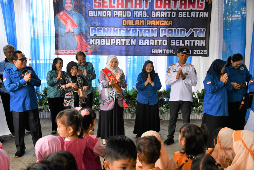Bunda PAUD Kab Barsel Hj. Permana Sari, Hadiri Kegiatan Pembinaan Bunda PAUD Kabupaten Barito Selatan bertempat yang diselenggarakan oleh Pokja Bunda PAUD Kab Barsel di TK Bina Nusantara Jalan Pelita Raya Gang Sempurna, Rabu (07/05/25). Dalam kegiatan ini dilakukan senam bersama peserta didik dan 30 Kepala Sekolah yang berasal dari PAUD/TK di Kecamatan Dusun Selatan dan pembagian makanan sehat serta pembinaan secara langsung oleh Bunda PAUD kepada PAUD Percontohan HI dan PAUD Percontohan Kabupaten serta PAUD IMBAS Percontohan (30 Kepala Sekolah Satuan Pendidikan dan TK).